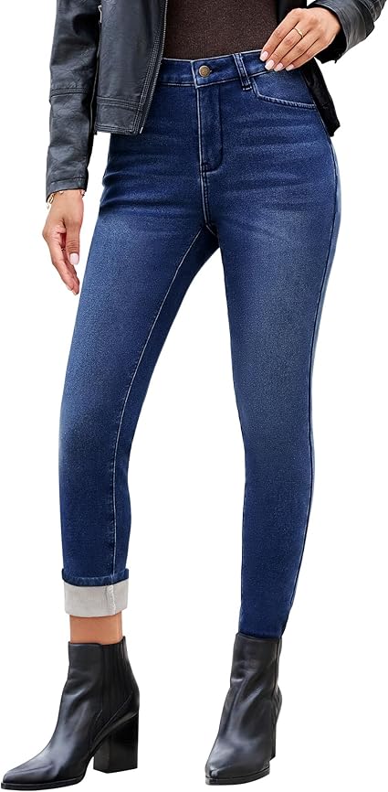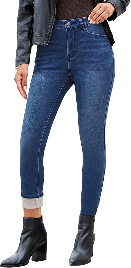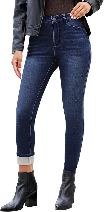 GRAPENT Fleece Lined Jeans for Women Trendy High Waisted Skinny Winter Stretchy Denim Pants Ankle Warm Thermal Jeggings