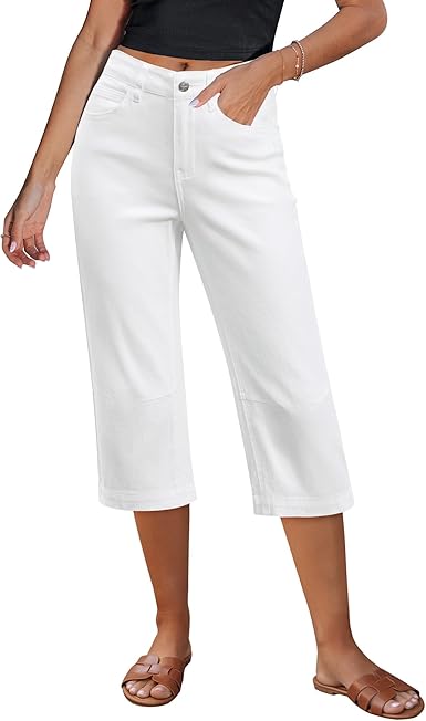 GRAPENT Capri Jeans for Women High Waisted Wide Leg Trendy Strechy Loose Straight Cropped Denim Jeans Pants with Pockets