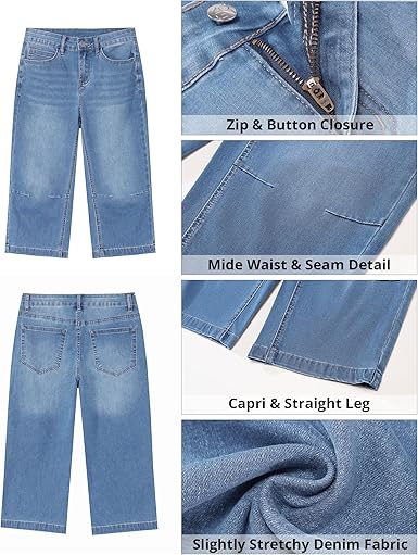 Flattering Capri Length and Silhouette: Designed with a 20" inseam and straight-leg cut, these jeans for women straight leg sit at the most flattering point on the calf. The mid-rise waistband creates a balanced, streamlined look that enhances your natural shape