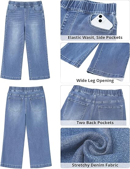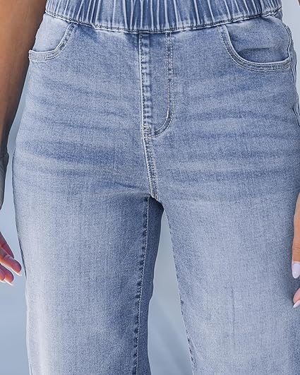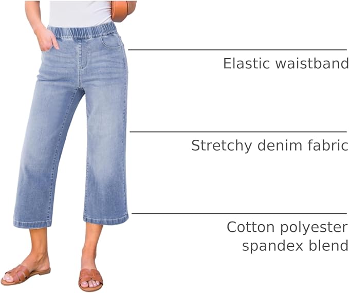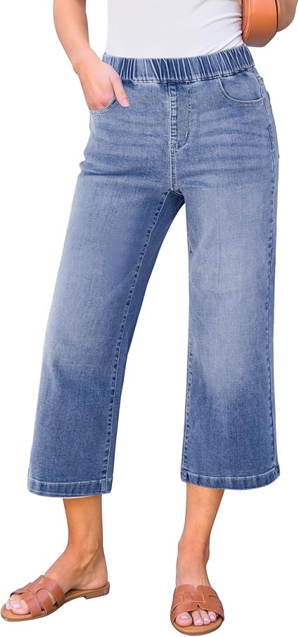 GRAPENT Capri Jeans for Women Wide Leg High Waisted Effortless Flow Pull On Stretchy Denim Elastic Waist Pants with Pockets