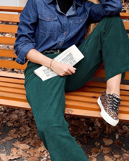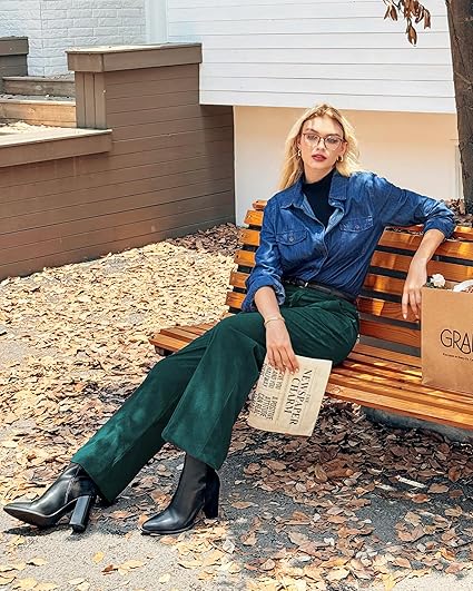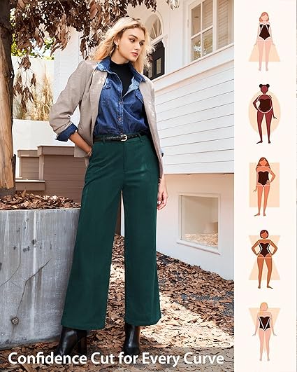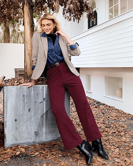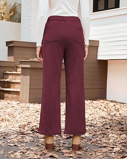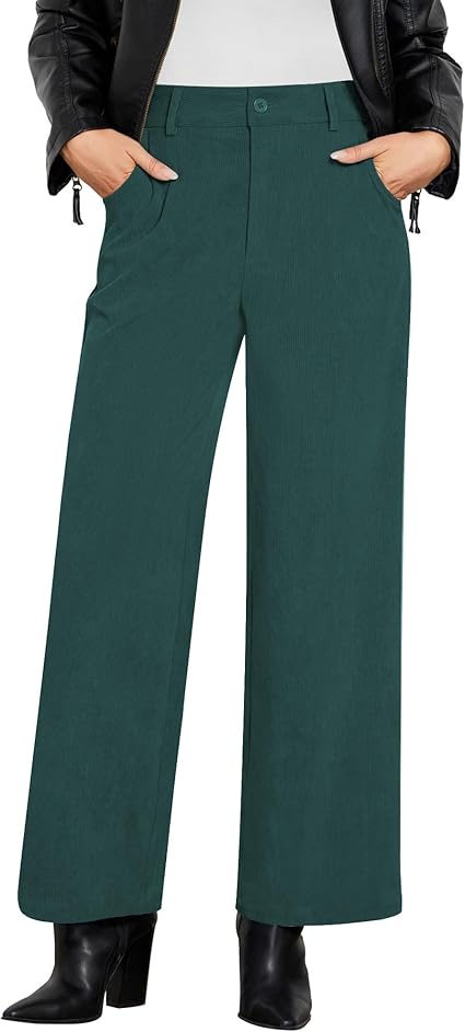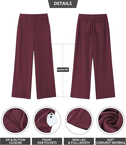 GRAPENT Corduroy Wide Leg Pants Woman High Waisted Fall Business Casual Elastic Waist Loose Trendy Trousers with Pockets
