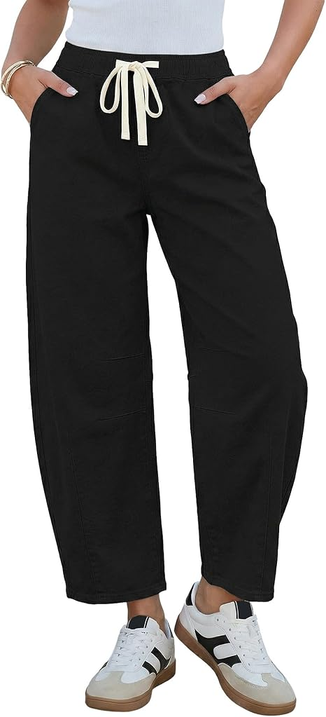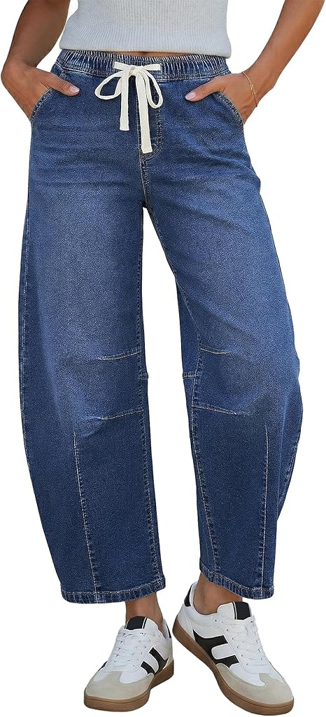 GRAPENT Barrel Jeans for Women Trendy High Waisted Cropped Baggy Wide Leg Pull On Elastic Waist Stretchy Denim Pants